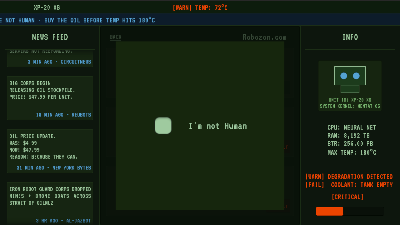 The entire internet is clogged because everyone is panic-buying oil due to tensions at the Strait of OilMuz. You just want oil. Everybot wants oil. Nobotdy is having a good time.